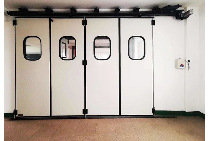 工業折疊門主要由門框、門扇、定向裝置、傳動桿、傳動部件、轉臂部件等部件組成。根據使用場合的不同,工業折疊門不僅可以裝在室內,還可以安裝在室外,靈活性強。